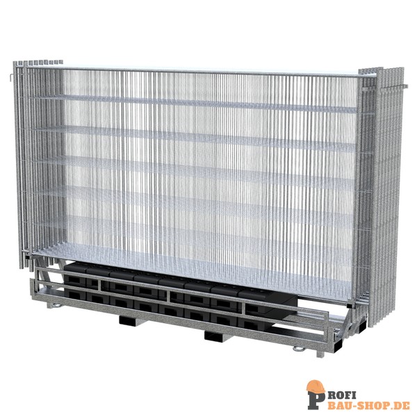 Bauzaun SET mit Twinpalette bestehend aus: 15x Mobil-Bauzaun verzinkt 15x Recyclingfuß für Bauzaun 20 kg (Art.-Nr. 3F110) 15x Verbindungsschellen für Bauzaun verzinkt (Art.-Nr. 3VB10L) 1x Twinpalette für 15 Zäune und 15 Füße (Art.-Nr. 3B212T-15)