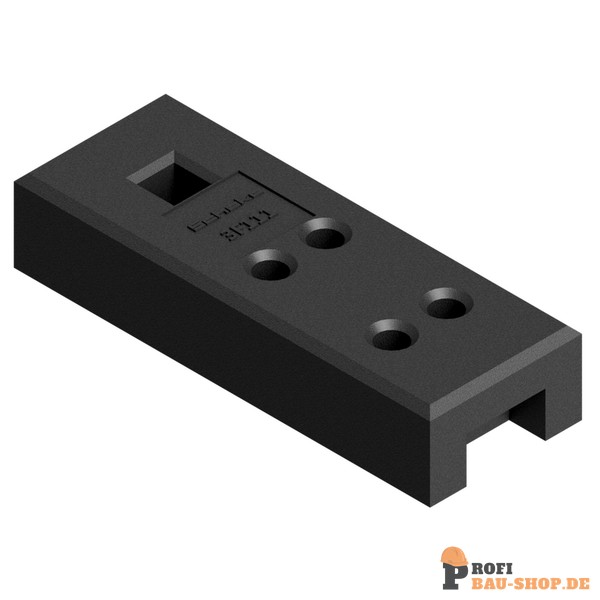 Schake Bauzaunfuß aus Kunststoffrecycling, Länge: 685 mm Höhe: 135 mm Breite: 250 mm mit 4 Löchern (Ø 42 mm) und 1 x 60 mm x 60 mm