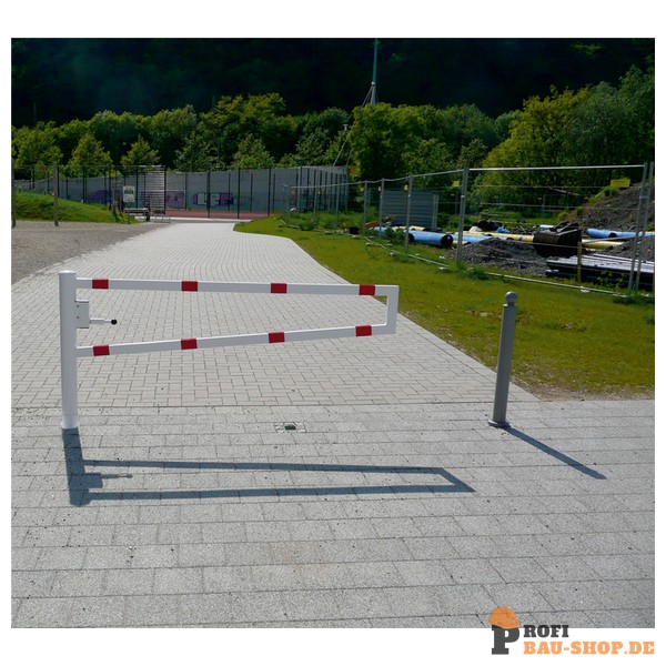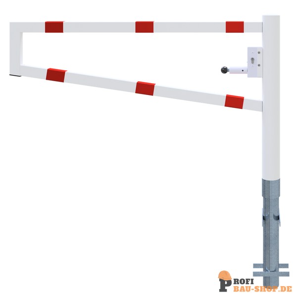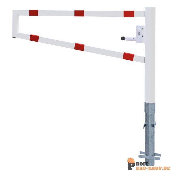 Schake Drehbare Wegesperre, zum Einbetonieren, feuerverzinkt und weiß beschichtet mit rot reflektierenden Leuchtstreifen, Gesamtbreite: 1500 mm, mit Profilzylinderschloss