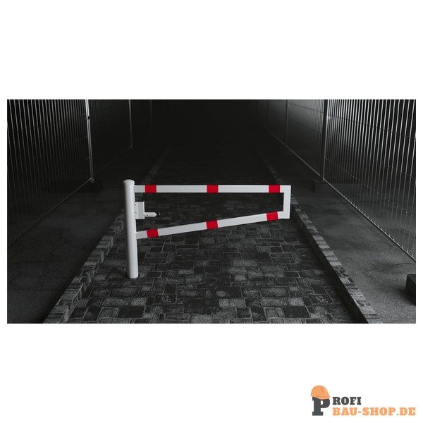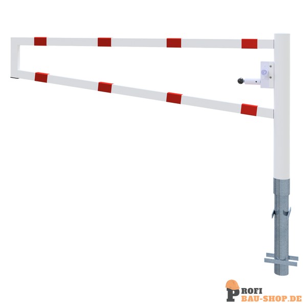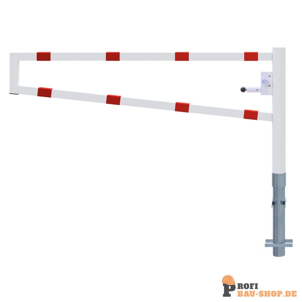 Schake Drehbare Wegesperre, zum Einbetonieren, feuerverzinkt und weiß beschichtet mit rot reflektierenden Leuchtstreifen, Gesamtbreite: 2000 mm, mit Dreikantverschluss
