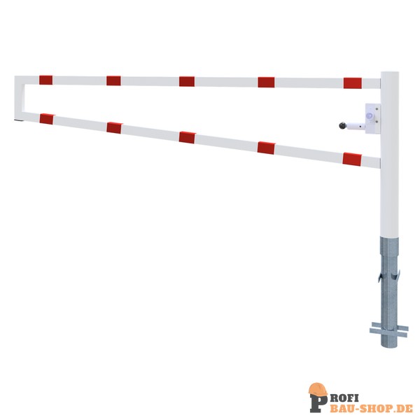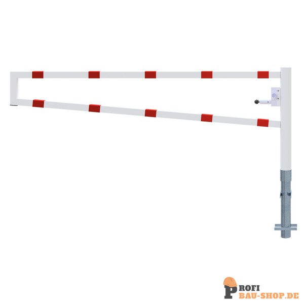 Schake Drehbare Wegesperre, zum Einbetonieren, feuerverzinkt und weiß beschichtet mit rot reflektierenden Leuchtstreifen, Gesamtbreite: 2500 mm, mit Dreikantverschluss