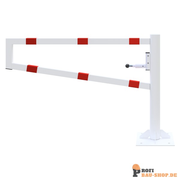 Schake Drehbare Wegesperre, für Dübelbefestigung, feuerverzinkt und weiß beschichtet mit rot reflektierenden Ringen, Gesamtbreite: 1500 mm, für Vorhangschloss