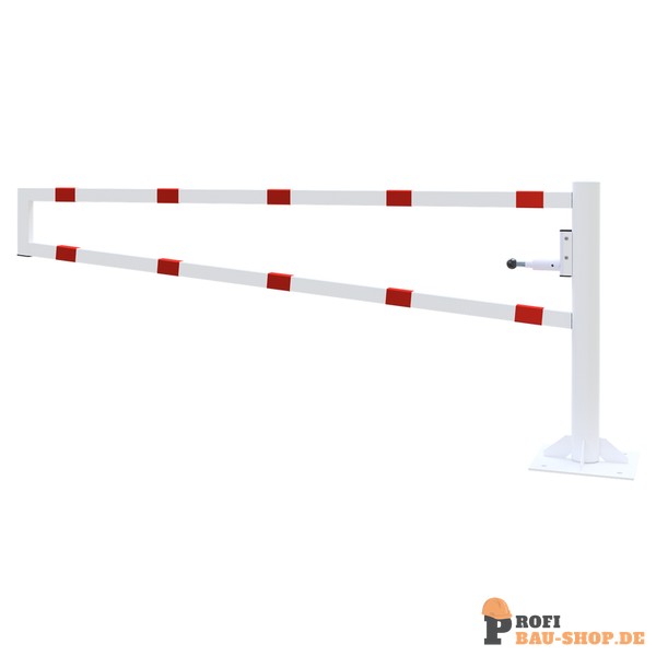 Schake Drehbare Wegesperre, für Dübelbefestigung, feuerverzinkt und weiß beschichtet mit rot reflektierenden Ringen, Gesamtbreite: 2500 mm, für Vorhangschloss