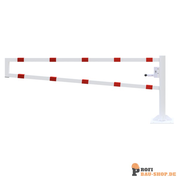 Schake Drehbare Wegesperre, für Dübelbefestigung, feuerverzinkt und weiß beschichtet mit rot reflektierenden Ringen, Gesamtbreite: 2500 mm, mit Profilzylinderschloss