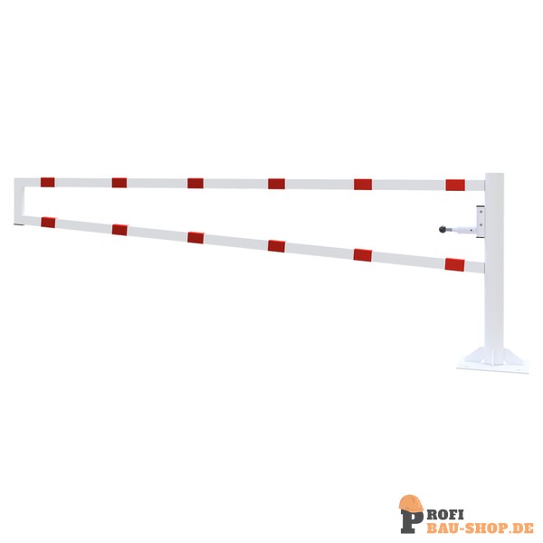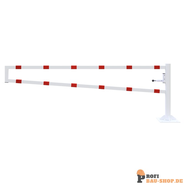 Schake Drehbare Wegesperre, für Dübelbefestigung, feuerverzinkt und weiß beschichtet mit rot reflektierenden Ringen, Gesamtbreite: 3000 mm, für Vorhangschloss