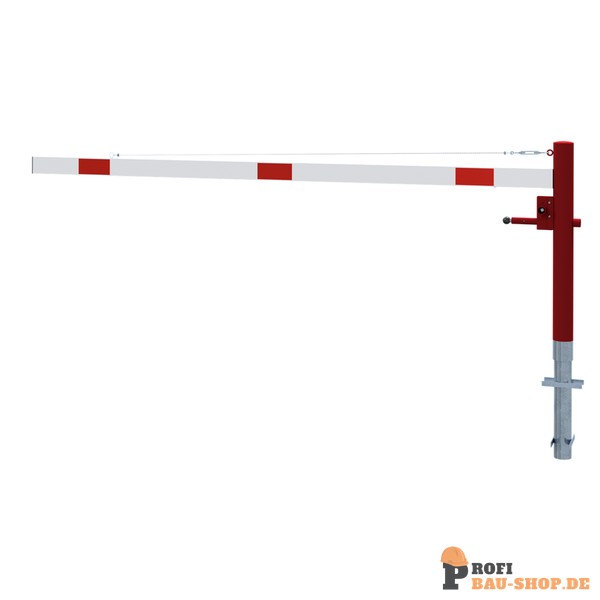 Schake Drehschranke mit Seilzugverstärkung, zum Einbetonieren, feuerverzinkt und weiß beschichtet mit rot reflektierenden Leuchtstreifen, Schrankenbaumlänge: 3000 mm, mit Dreikantverschluss