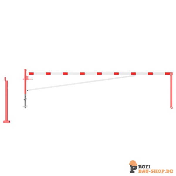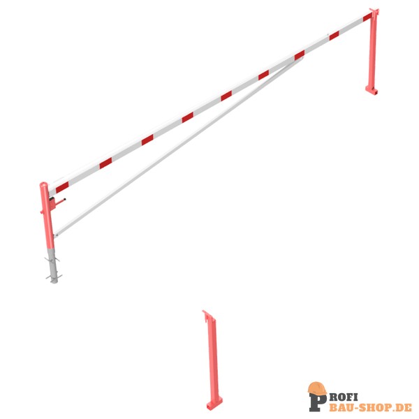 Schake Drehschranke mit Auflagepfosten und Seilzugverstärkung, zum Einbetonieren, feuerverzinkt und weiß beschichtet mit rot reflektierenden Leuchtstreifen, Schrankenbaumlänge: 60