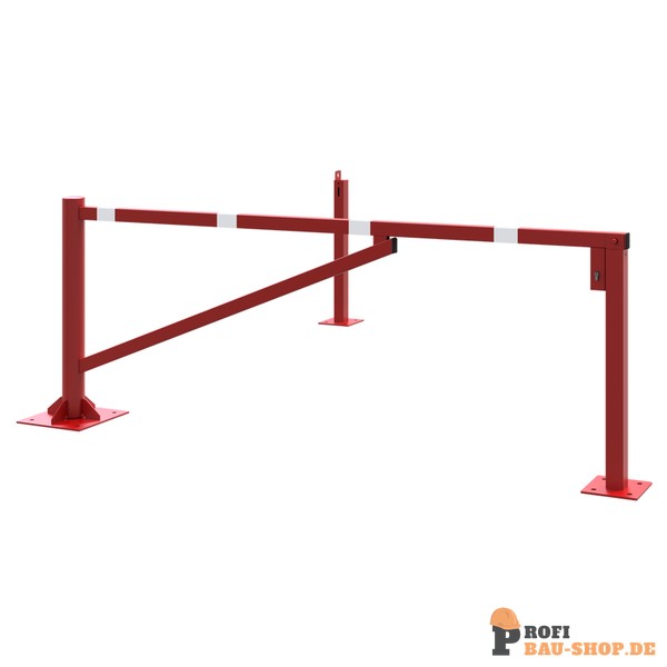 Schake Drehschranke, für Dübelbefestigung, feuerverzinkt und rot beschichtet mit weiß reflektierenden Ringen, lichte Weite: 2500 mm, mit Profilzylinderschloss