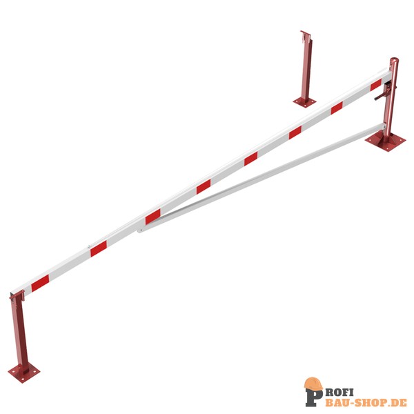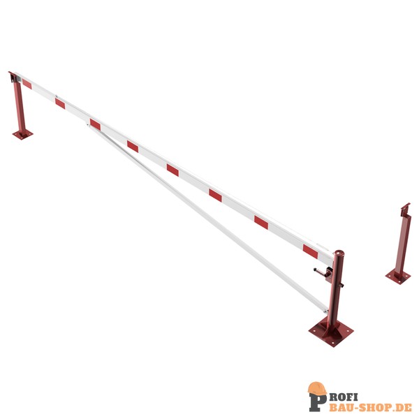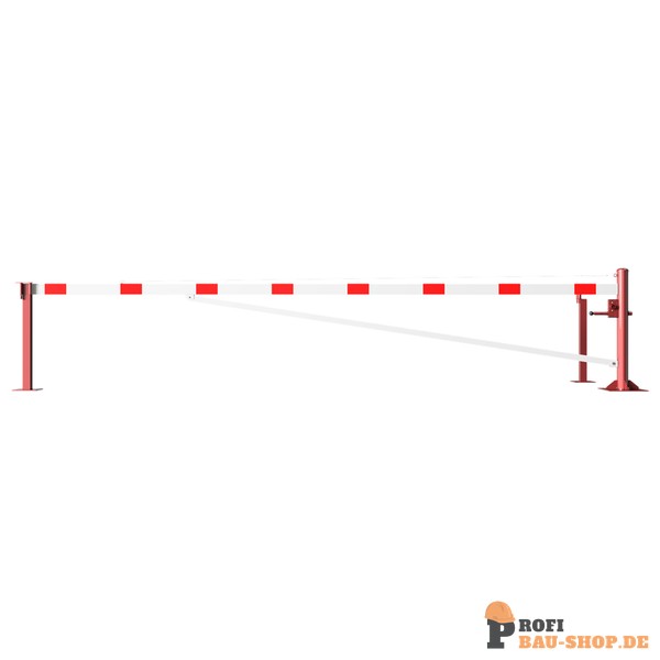 Schake Drehschranke mit Auflagepfosten und Seilzugverstärkung, für Dübelbefestigung, feuerverzinkt und rot beschichtet mit weiß reflektierenden Ringen, Schrankenbaumlänge: 5500 mm