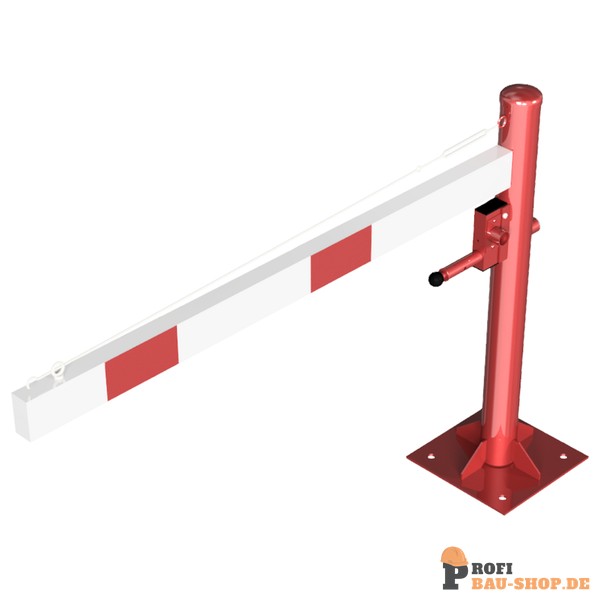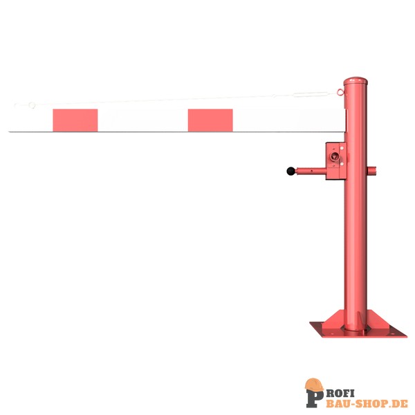 Schake Drehschranke mit Seilzugverstärkung, für Dübelbefestigung, feuerverzinkt und rot beschichtet mit weiß reflektierenden Ringen, Schrankenbaumlänge: 1500 mm, mit Dreikantversc