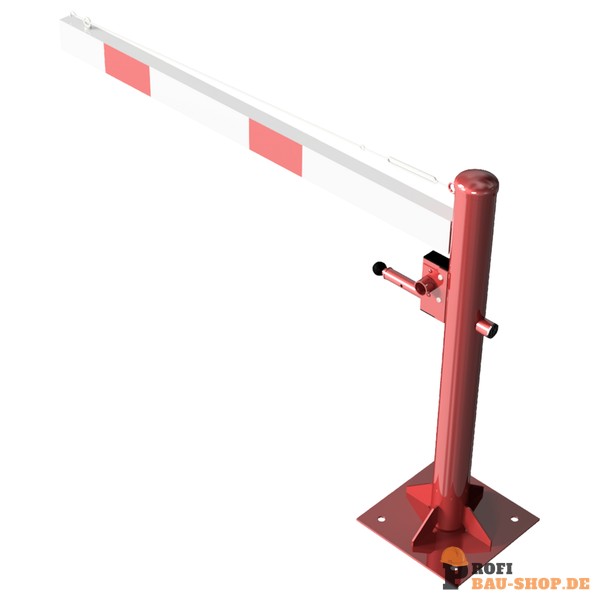 DrehpfostenStahlrohr Ø 102 mm, feuerverzinkt zum Einbetonieren und rot beschichtet Schrankenbaum: Aluminiumrohr 100 x 50 mm, weiß beschichtet mit rot refl