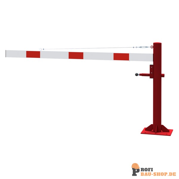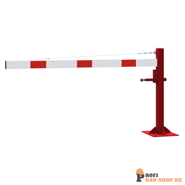 Schake Drehschranke mit Seilzugverstärkung, für Dübelbefestigung, feuerverzinkt und rot beschichtet mit weiß reflektierenden Ringen, Schrankenbaumlänge: 2000 mm, für Vorhangschlos