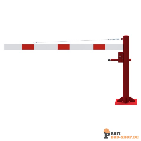 DrehpfostenStahlrohr Ø 102 mm, feuerverzinkt zum Einbetonieren und rot beschichtet Schrankenbaum: Aluminiumrohr 100 x 50 mm, weiß beschichtet mit rot refl