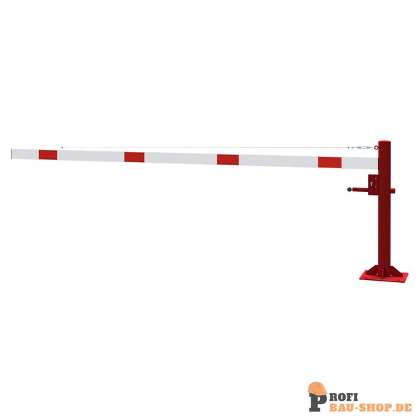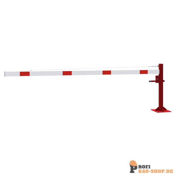 Schake Drehschranke mit Seilzugverstärkung, für Dübelbefestigung, feuerverzinkt und rot beschichtet mit weiß reflektierenden Ringen, Schrankenbaumlänge: 3500 mm, mit Profilzylinde