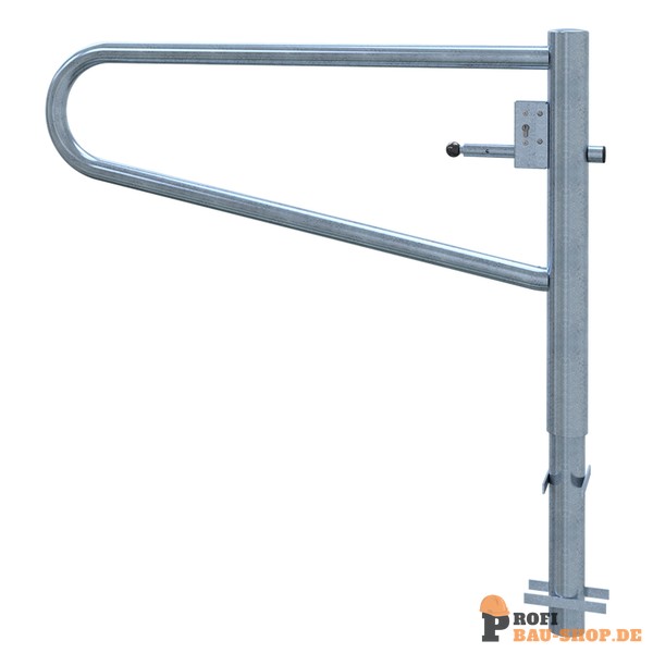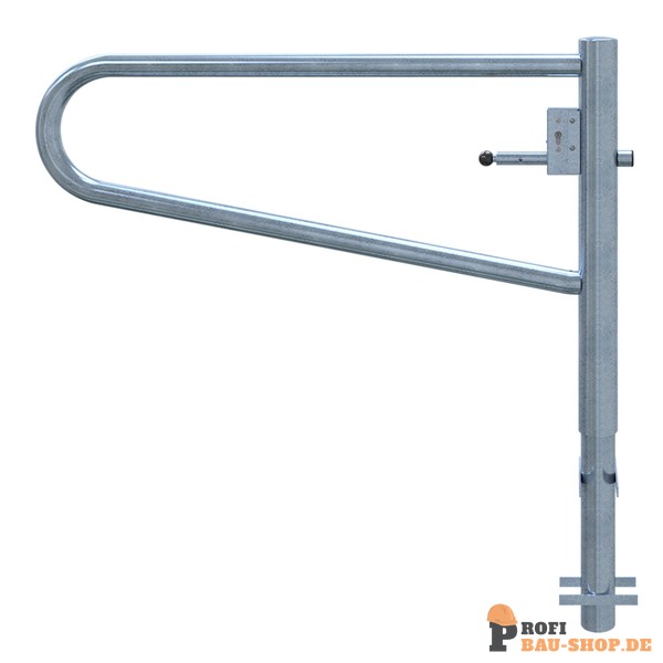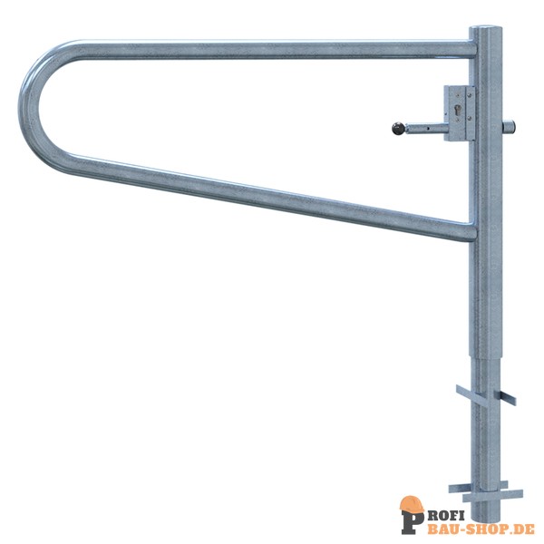 Schake Drehbare Gatterschranke, zum Einbetonieren, feuerverzinkt, Gesamtbreite: 1500 mm, mit Profilzylinderschloss
