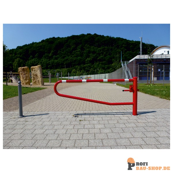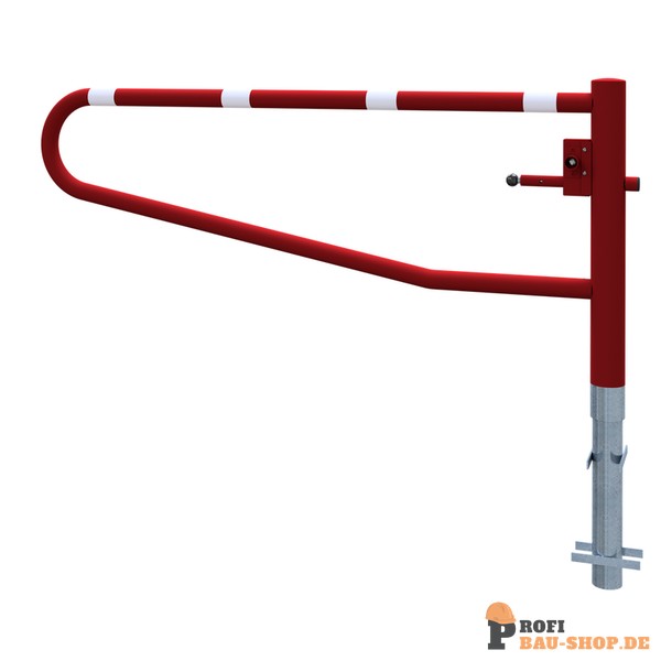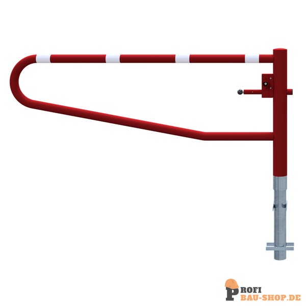 Schake Drehbare Gatterschranke, zum Einbetonieren, feuerverzinkt und beschichtet rot / weiß, Gesamtbreite: 2000 mm, mit Dreikantverschluss