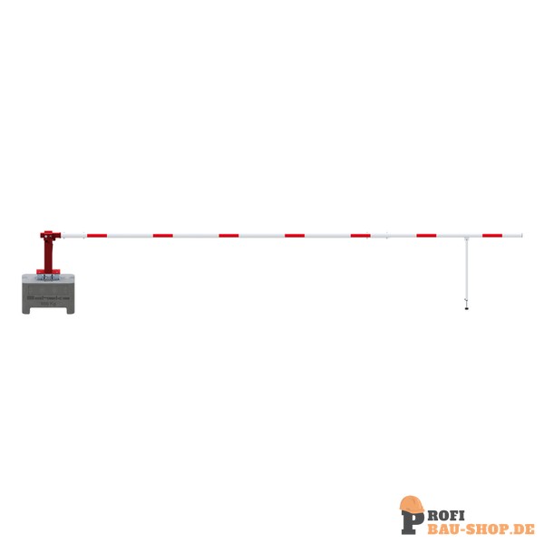 Mobile Handschranke Die mobile Handschranke ist für den Einsatz bei Bau- stellenzufahrten, Umbauten oder anderweitigen temporären Zufahrtsbeschränkungen vorgesehen. Durch den Entfall der Fundamentarbeiten, kann die Schranke schnell und sicher aufgestellten werden. Für die Standfestigkeit sorgt unsere Beton-Aufstellvorrichtung mit einem Gewicht von 600kg