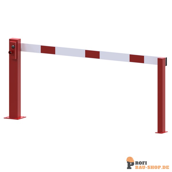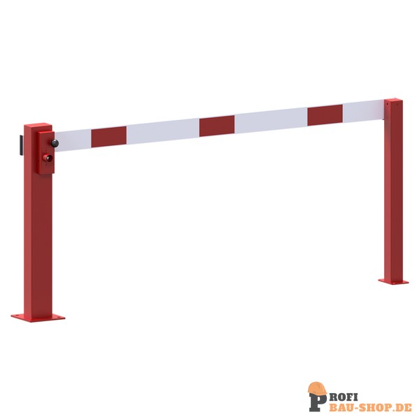Kompakte Handschranke mit festem Auflagepfosten Für Parkraumsicherung, Forstwege absperren, Werkschutz und innerbetriebliche Wege abzusichern.