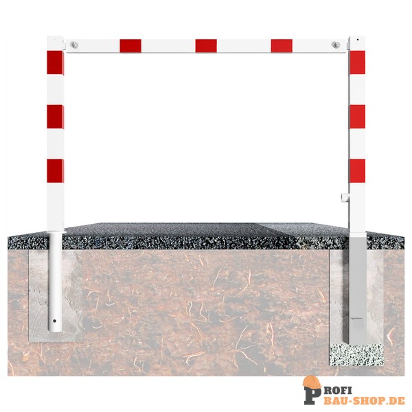 Schake Wegesperren mit Dreikantverschluss schwenkbar mit Oberholm, feuerverzinkt und weiß beschichtet mit rot reflektierenden Leuchtstreifen, Gesamtbreite: 3000 mm