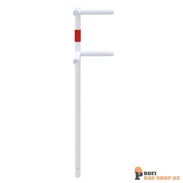 Schake Schutzgeländer Stahlrohr Ø 48 mm, Standpfosten zum Einbetonieren, Eckpfosten, feuerverzinkt und weiß beschichtet mit rot reflektierenden Streifen