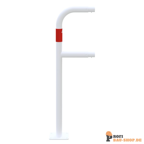 Schake Schutzgeländer Stahlrohr Ø 48 mm, Standpfosten für Dübelbefestigung, Endpfosten, feuerverzinkt und weiß beschichtet mit rot reflektierenden Streifen