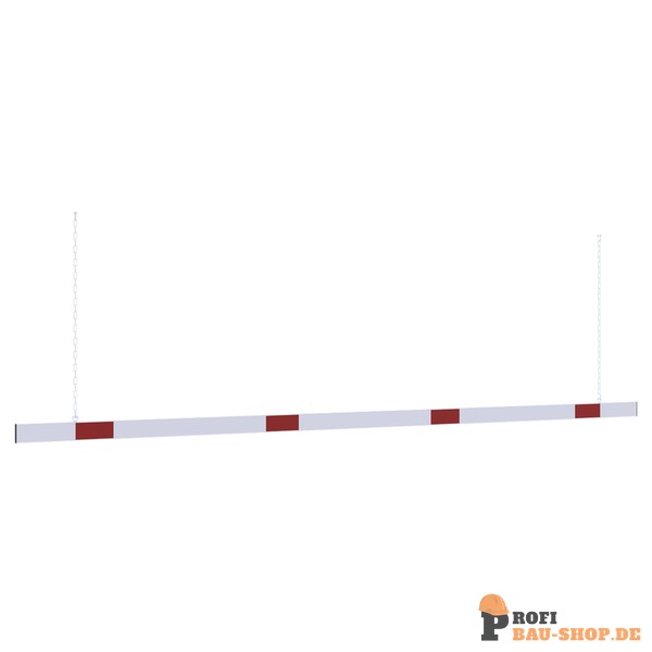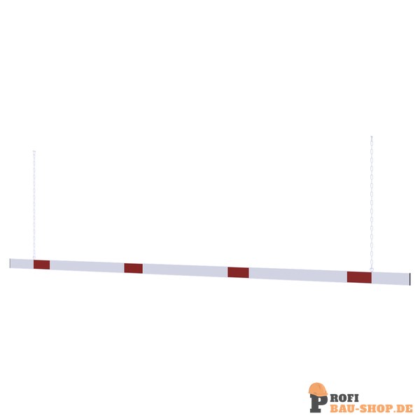 Höhenbegrenzer Barriere aus Aluminiumprofil Höhe 100mm, mit seitlichen Schutzkappen weiß beschichtet mit rot reflektierenden Streifen, inkl. 2 x 1,00mtr. Stahlkette