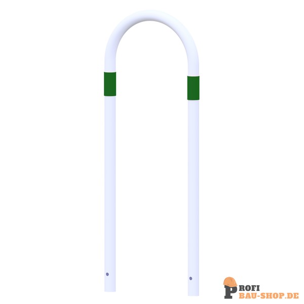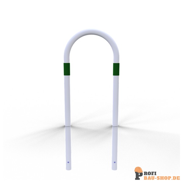 Schake Absperrbügel als E-Ladesäulenschutz, zum Einbetonieren, Gesamtbreite: 460mm, Gesamthöhe: 1200mm, feuerverzinkt und weiß pulverbeschichtet mit grün reflektierenden Streifen