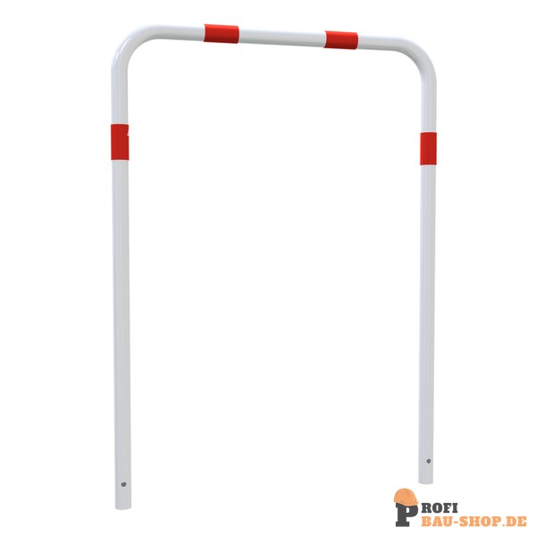 Schake Rohrbügel aus Stahlrohr Ø 48 x 2,5 mm ohne Querholm zum Einbetonieren, Gesamtbreite 1000 mm, Gesamthöhe 1400 mm, feuerverzinkt und weiß beschichtet mit rot reflektierenden Streifen