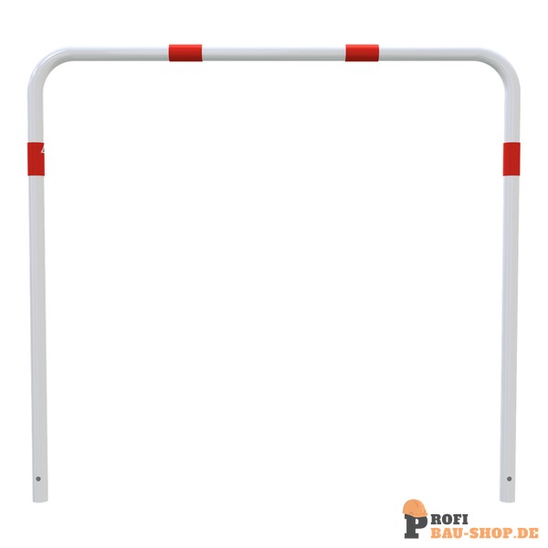 Schake Rohrbügel aus Stahlrohr Ø 48 x 2,5 mm ohne Querholm zum Einbetonieren, Gesamtbreite 1500 mm, Gesamthöhe 1400 mm, feuerverzinkt und weiß beschichtet mit rot reflektierenden Streifen