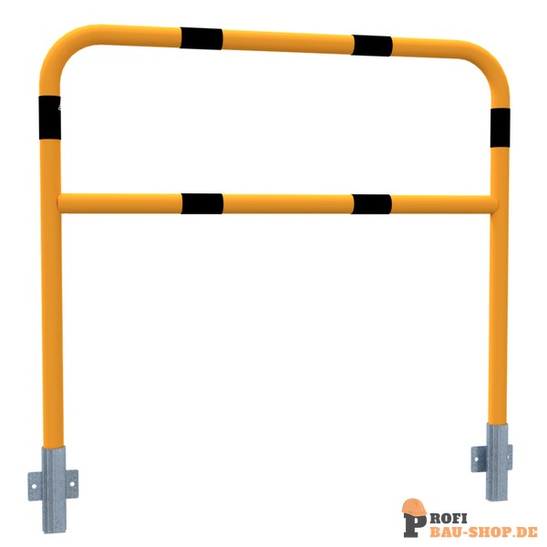 Schake Schutzbügel Stahlrohr Ø 48 x 2,5 mm mit Querholm für Wandmontage, Gesamtbreite: 1200 mm, feuerverzinkt und gelb beschichtet mit schwarzen Warnstreifen