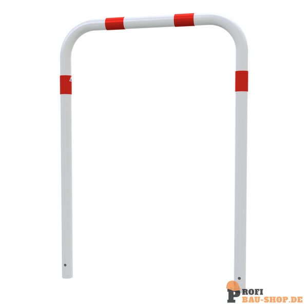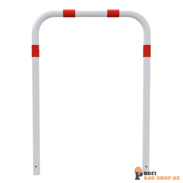 Schake Rohrbügel aus Stahlrohr Ø 60 x 2,5 mm ohne Querholm zum Einbetonieren, Gesamtbreite: 1000 mm, Gesamthöhe: 1400 mm, feuerverzinkt und weiß beschichtet mit rot reflektierenden Leuchtstreifen