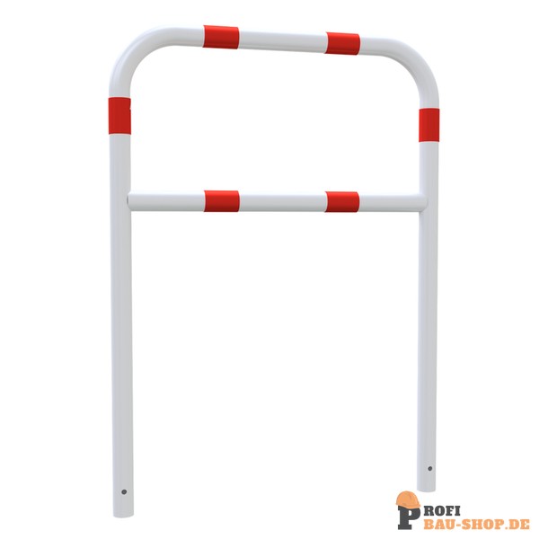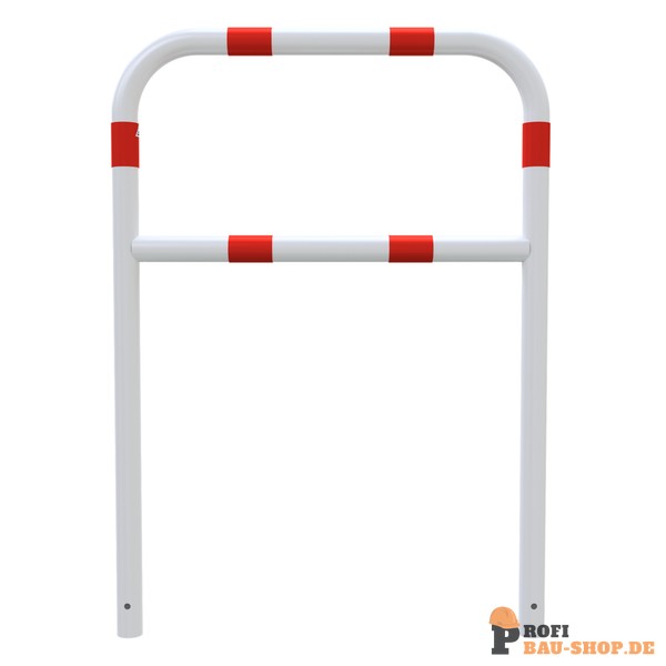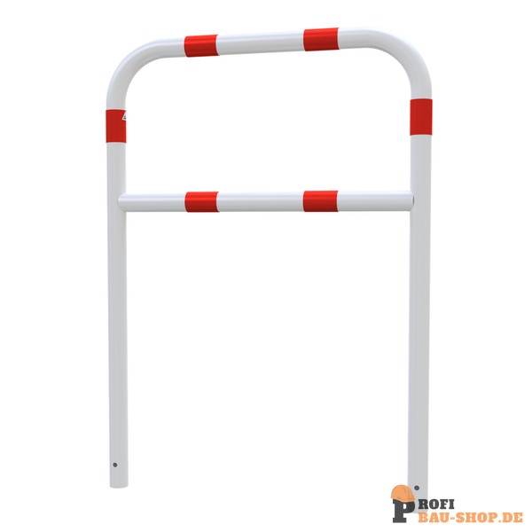 Schake Schutzbügel Stahlrohr Ø 60 x 2,5 mm mit Querholm, Gesamtbreite: 1000 mm, Gesamthöhe: 1400 mm, feuerverzinkt und weiß beschichtet mit rot reflektierenden Leuchtstreifen