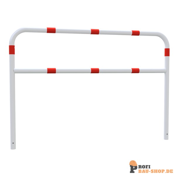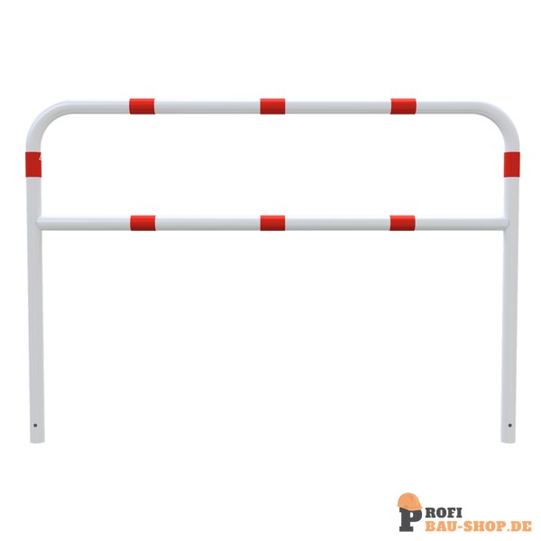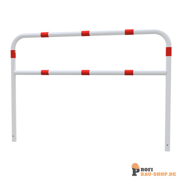 Schake Schutzbügel Stahlrohr Ø 60 x 2,5 mm mit Querholm, Gesamtbreite: 2000 mm, Gesamthöhe: 1400 mm, feuerverzinkt und weiß beschichtet mit rot reflektierenden Leuchtstreifen