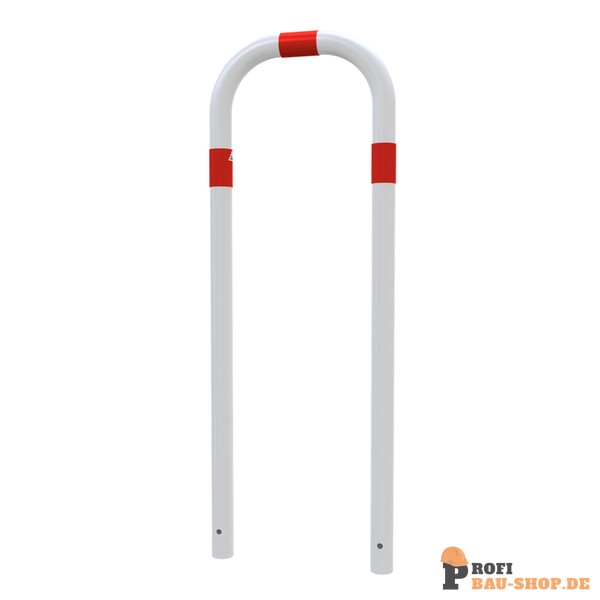 Schake Rohrbügel aus Stahlrohr Ø 60 x 2,5 mm ohne Querholm zum Einbetonieren, Gesamtbreite: 500 mm, Gesamthöhe: 1400 mm, feuerverzinkt und weiß beschichtet mit rot reflektierenden