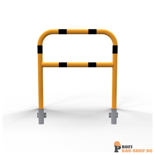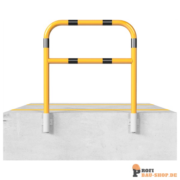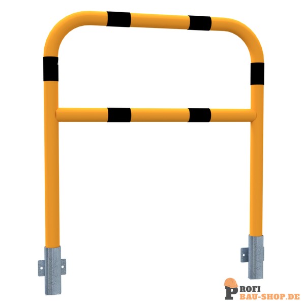Schake Schutzbügel Stahlrohr Ø 60 x 2,5 mm mit Querholm für Wandmontage, Gesamtbreite: 1000 mm, feuerverzinkt und gelb beschichtet mit drei schwarz reflektierenden Leuchtstreifen