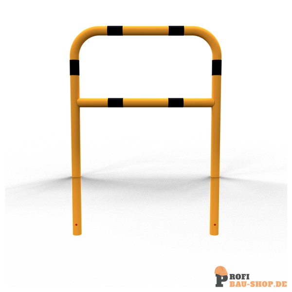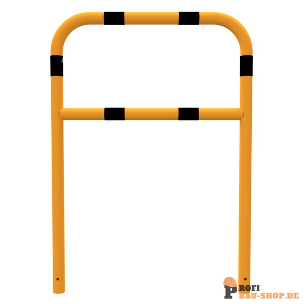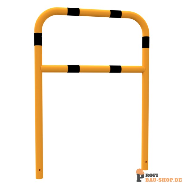 Schake Schutzbügel Stahlrohr Ø 60 x 2,5 mm mit Querholm, Gesamtbreite: 1000 mm, Gesamthöhe: 1400 mm, feuerverzinkt und gelb beschichtet mit schwarzen Warnstreifen