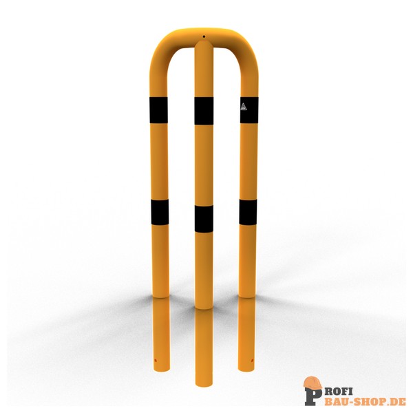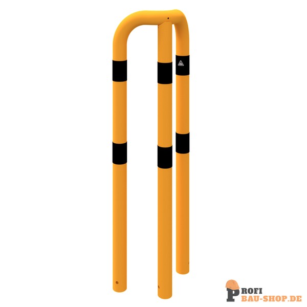 Schake Rammschutzbügel 90° gleichschenklig Stahlrohr Ø 76 mm gelb / schwarz, Gesamtbreite: 350 mm, Höhe Überflur: 1150 mm, zum Einbetonieren
