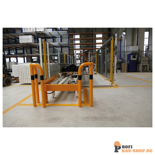Schutzwinkel 90°, Ø76 mm feuerverzinkt, gelb pulverbeschichtet mit schwarzen Warnstreifen gleichschenklig