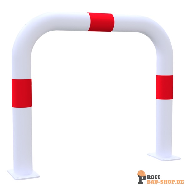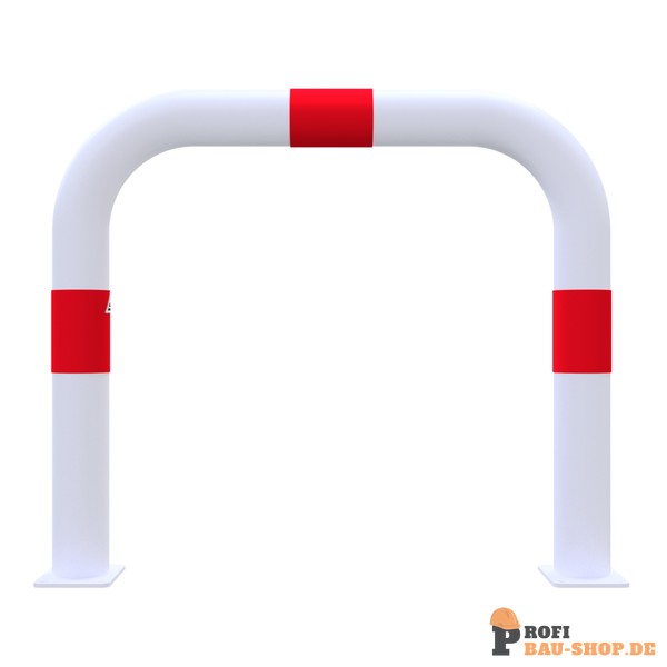 Schake Rammschutzbügel als E-Ladesäulenschutz, zum Aufdübeln, Gesamtbreite: 750mm, Gesamthöhe: 650mm, feuerverzinkt und weiß pulverbeschichtet mit 3 rot reflektierenden Streifen F