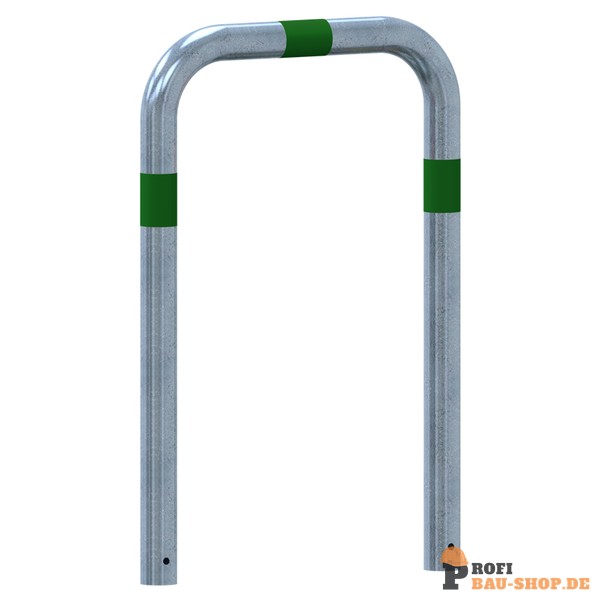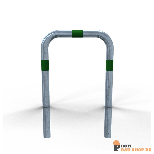 Schake Rammschutzbügel als E-Ladesäulenschutz, zum Einbetonieren, Gesamtbreite: 750mm, Gesamthöhe: 1150mm, feuerverzinkt mit grün reflektierenden Streifen Folie Typ RA1/A