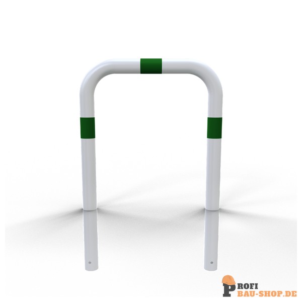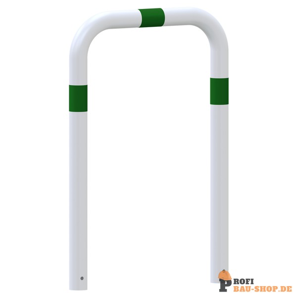 Schake Rammschutzbügel E-Ladesäulenschutz, zum Einbetonieren, feuerverzinkt, weiß pulverbeschichtet mit grün reflektierenden Streifen