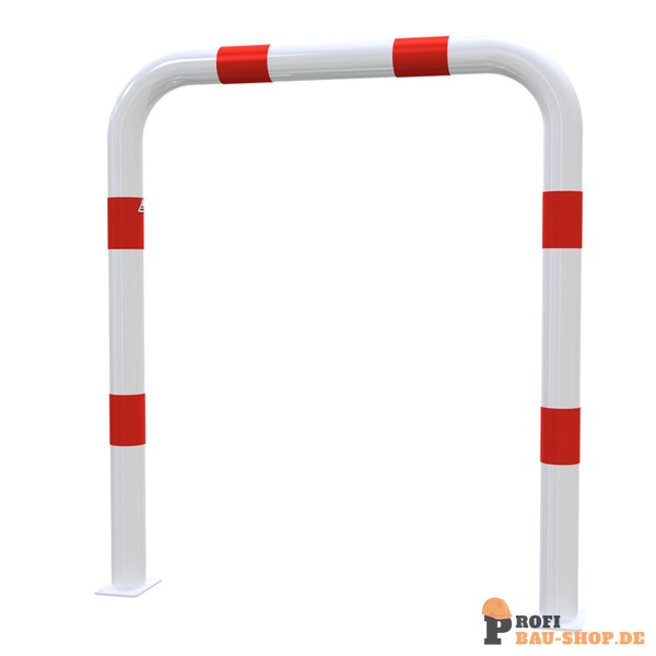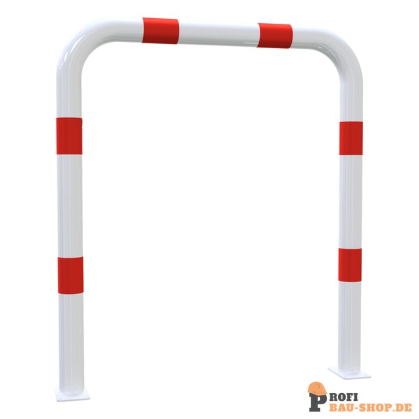 Schake Rammschutzbügel Ø 76 x 2,6 mm ohne Querholm für Dübelbefestigung, Gesamtbreite: 1000 mm, Gesamthöhe: 1150 mm, feuerverzinkt und weiß beschichtet mit rot reflektierenden Leu