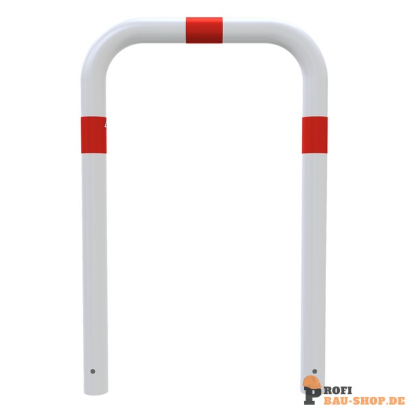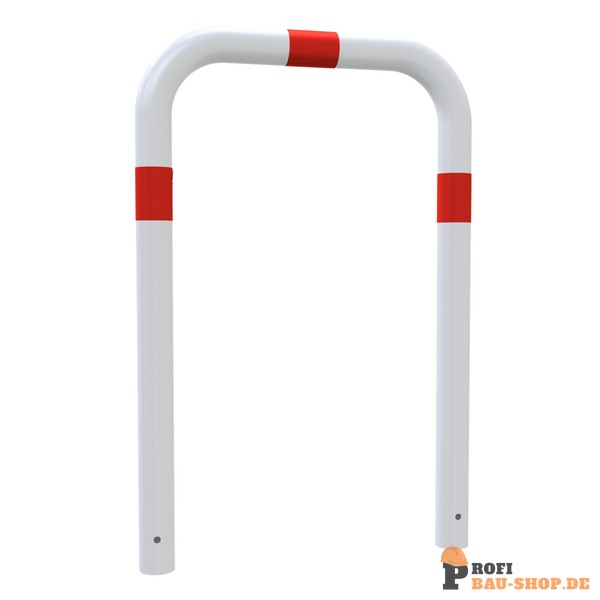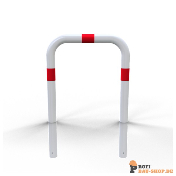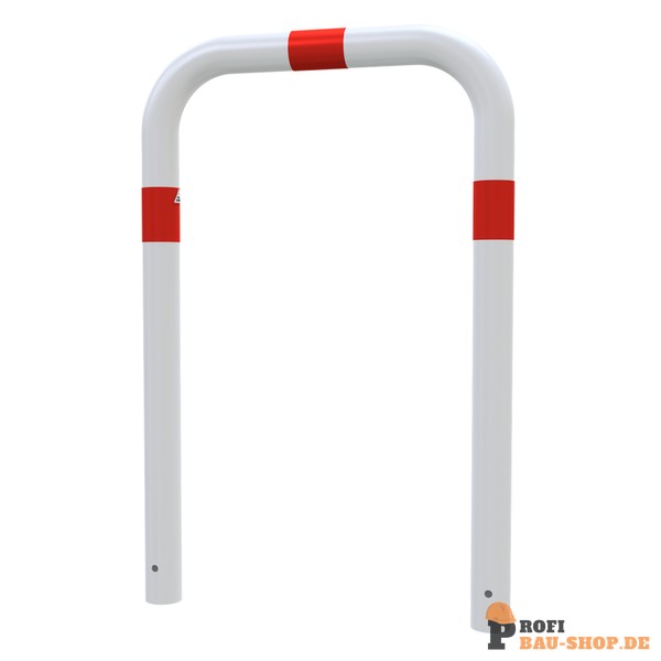 Schake Abweisebügel Ø 76 x 2,6 mm ohne Querholm zum Einbetonieren, Gesamtbreite: 750 mm, Gesamthöhe: 1000 mm, feuerverzinkt und weiß beschichtet mit rot reflektierenden Leuchtstreifen