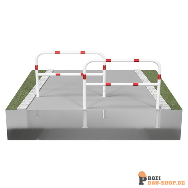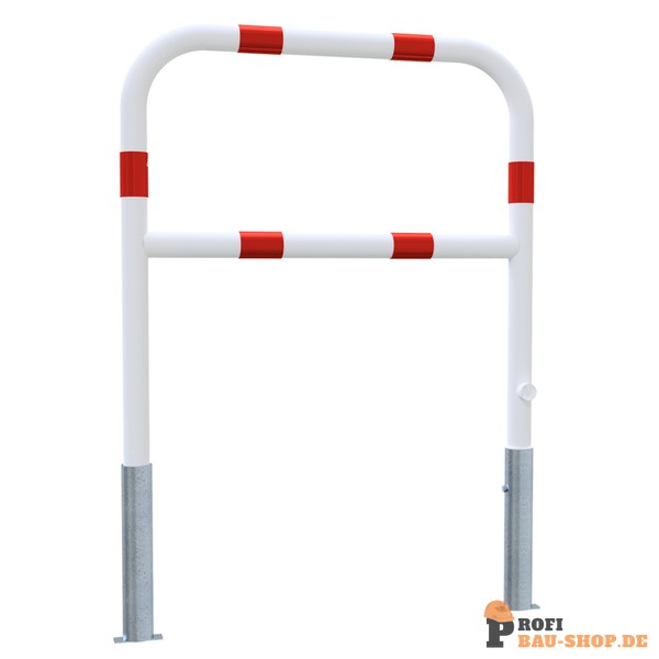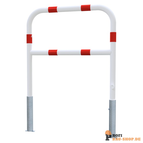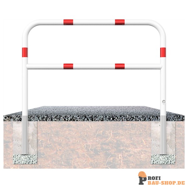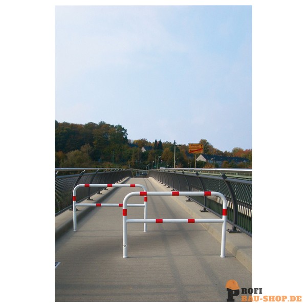Schake Wegesperren herausnehmbar und drehbar mit Dreikantverschluss mit Knieholm, feuerverzinkt und weiß beschichtet mit rot reflektierenden Leuchtstreifen, Gesamtbreite: 1000 mm