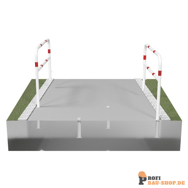 Technische Daten Wegesperren herausnehmbar und drehbar mit Dreikantverschluss mit Knieholm, feuerverzinkt und weiß beschichtet mit rot reflektierenden Leuchtstreifen, Gesamtbreite: 1000 mm