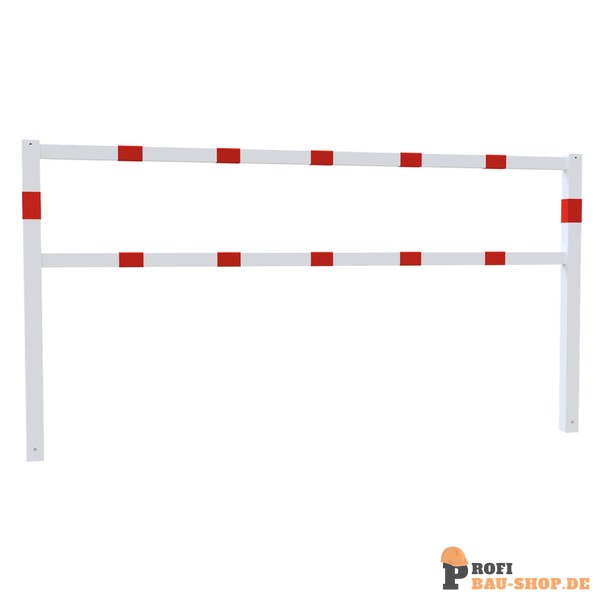Schake Wegesperren feststehend geschweißt mit Ober- und Knieholm, feuerverzinkt und weiß beschichtet mit rot reflektierenden Leuchtstreifen, Gesamtbreite: 2500 mm