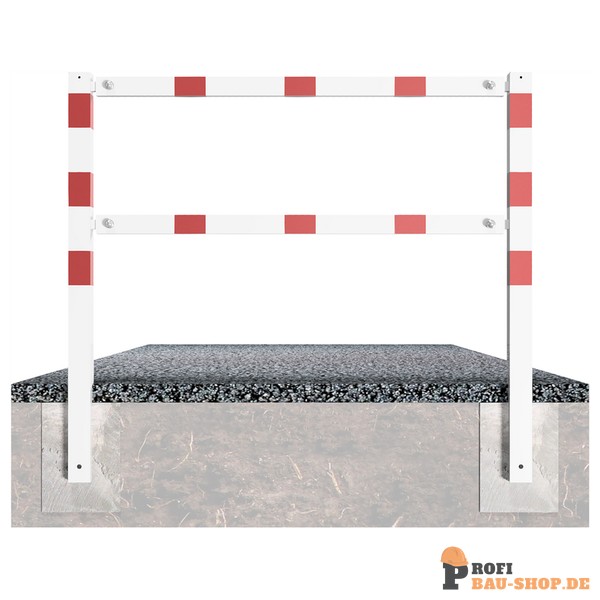 Schake Wegesperren feststehend zusammenschraubbar mit Ober- und Knieholm, feuerverzinkt und weiß beschichtet mit rot reflektierenden Leuchtstreifen, Gesamtbreite: 3000 mm