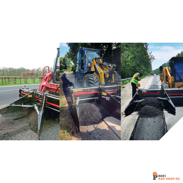 Der SIMEX ST 200 wurde entwickelt, um Asphalt oder Abbruchmaterial effizient und präzise aufzutragen. Das Anbaugerät wird frontseitig an Kompaktlader montiert (Standardaufnahme ISO 24410 inklusive) und ist die ideale Lösung für das Auffüllen von Aushubquerschnitten, den Bau von Gehwegen oder die Verbreiterung bestehender Fahrbahnen.