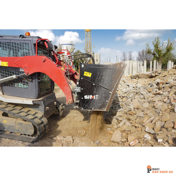 Der SIMEX CB 1200 ist ein robuster Brecherlöffel für Radlader und Kompaktlader (Betriebslast > 1200 kg). Er recycelt Beton, Bauschutt und Ziegel direkt vor Ort mit hoher Durchsatzleistung, selbst bei feuchtem Material.