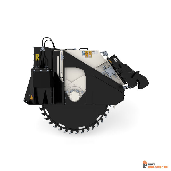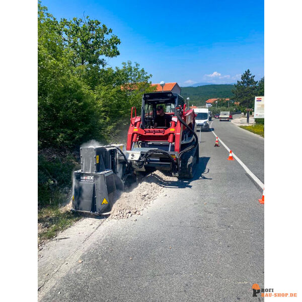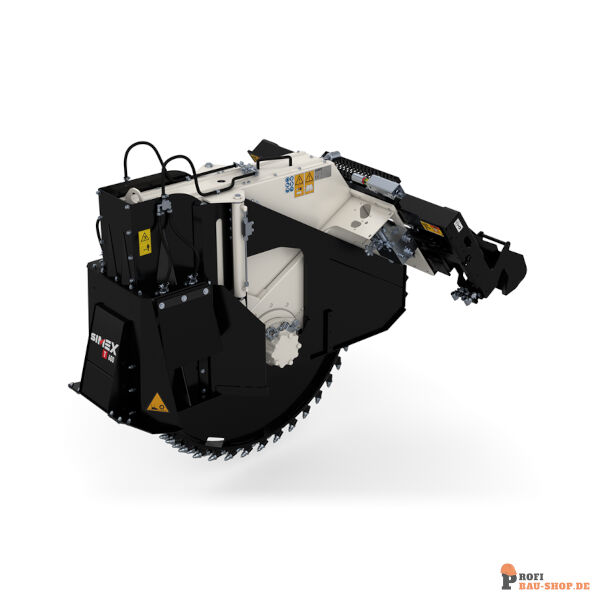 SIMEX T 600 mit 130 mm Schnittbreite für 5-Leitungs-Lader. Breite Gräben, tiefe Schnitte, direkte hydraulische Steuerung.